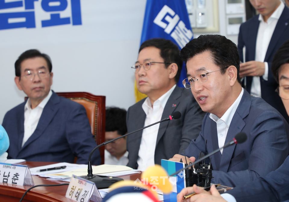 허태정 대전시장은 22일 오전 국회에서 열린 ‘더불어민주당 당대표-시·도지사 간담회’ 에 참석해 ▲ 대전・충남 혁신도시 지정 및 수도권 공공기관 추가이전 ▲ 지역인재 채용 확대를 위한 ‘혁신도시조성 및 발전에 관한 특별법’ 개정안의 신속한 국회 의결 ▲ 대덕특구 재창조를 견인할 대전시의 선도과제에 대한 국비지원 ▲ 원자력으로 인한 주민안전 확보와 주민지원 사업추진을 위한 지방세법의 조속한 개정 등 지역현안과 국비지원을 건의했다.