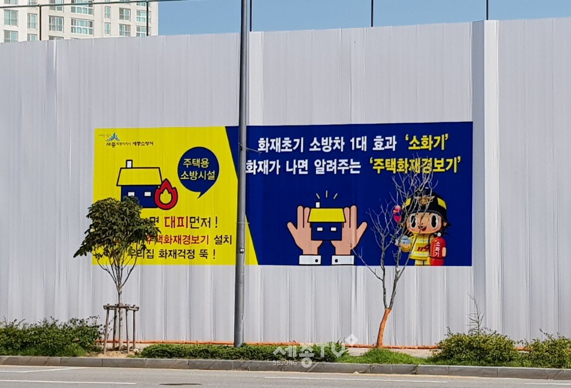 세종소방서(서장 안종석)는 1-5생활권 H5블록 한신더휴리저브2 공사장 울타리에 주택용 소방시설 설치를 당부하는 대형 랩핑을 설치해 시민들로부터 좋은 반응을 얻고 있다고 밝혔다.
