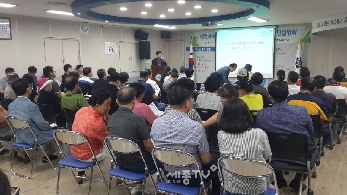 주민설명회에 참석한 주민들은 대전하수처리장 금고동 이전을 반대하고 환경기초시설 집적화에 따른 주민 피해를 토로했다.