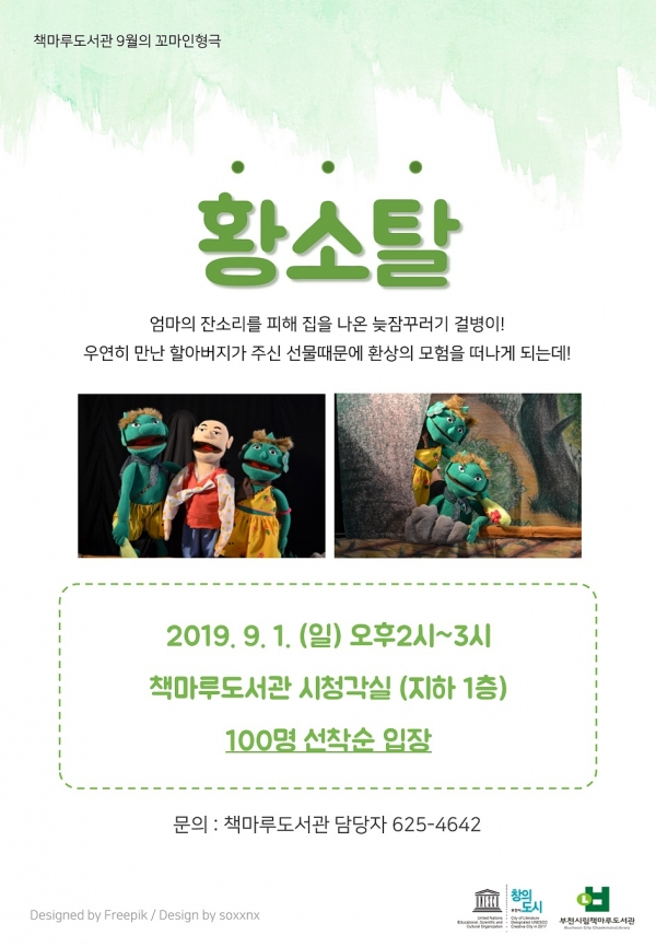 공연은 9월 1일 오후 2시 책마루도서관 지하 1층 시청각실에서 진행한다. 부천시민 누구나 별도의 신청 없이 입장할 수 있으며 선착순 100명까지 입장할 수 있다.