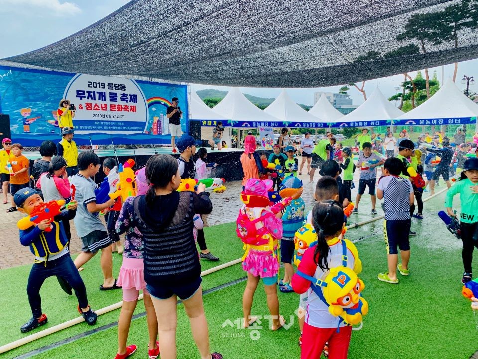 천안시 불당동 주민자치위원회(위원장 정명섭)가 24일 천안종합운동장 오륜문광장에서 ‘2019 불당 무지개 물축제’를 성대히 개최했다.
