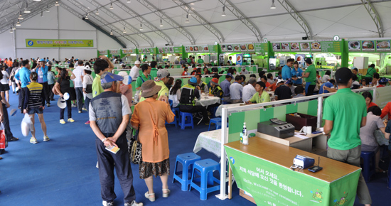 천안국제웰빙식품엑스포장에 위치한 웰빙식당B관이 관람객들의 인기를 한 몸에 받고 있다.