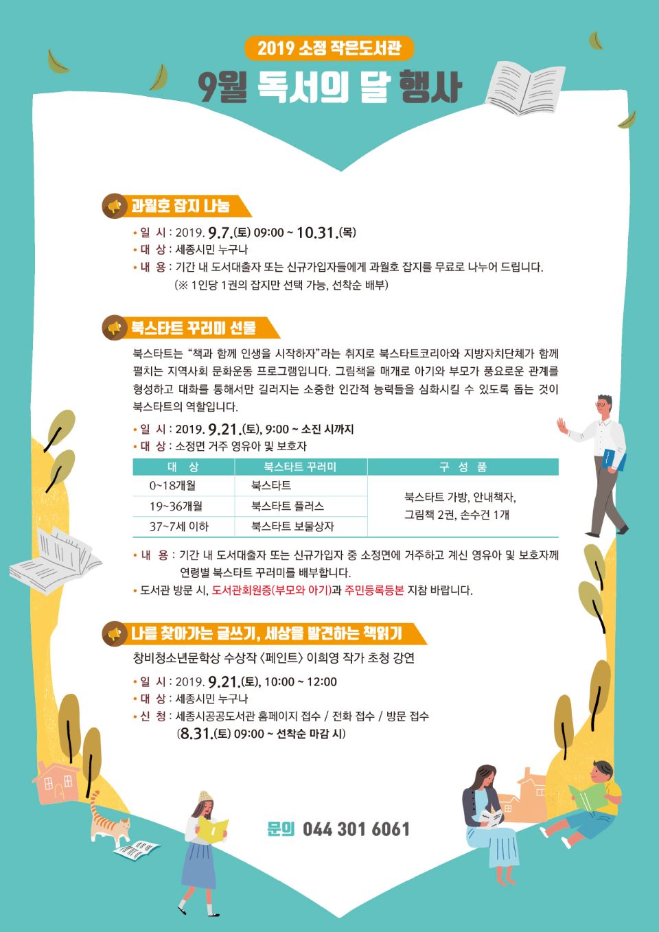 보다 자세한 사항은 소정 작은도서관(☎ 044-301-6061)으로 문의하면 된다.