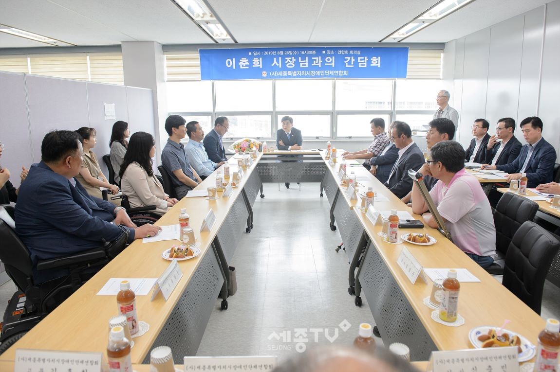 이춘희 세종특별자치시장이 28일 장애인단체연합회 회의실에서 장애인단체와의 간담회를 열고 장애인정책 발전 방향에 대해 소통하는 시간을 가졌다.