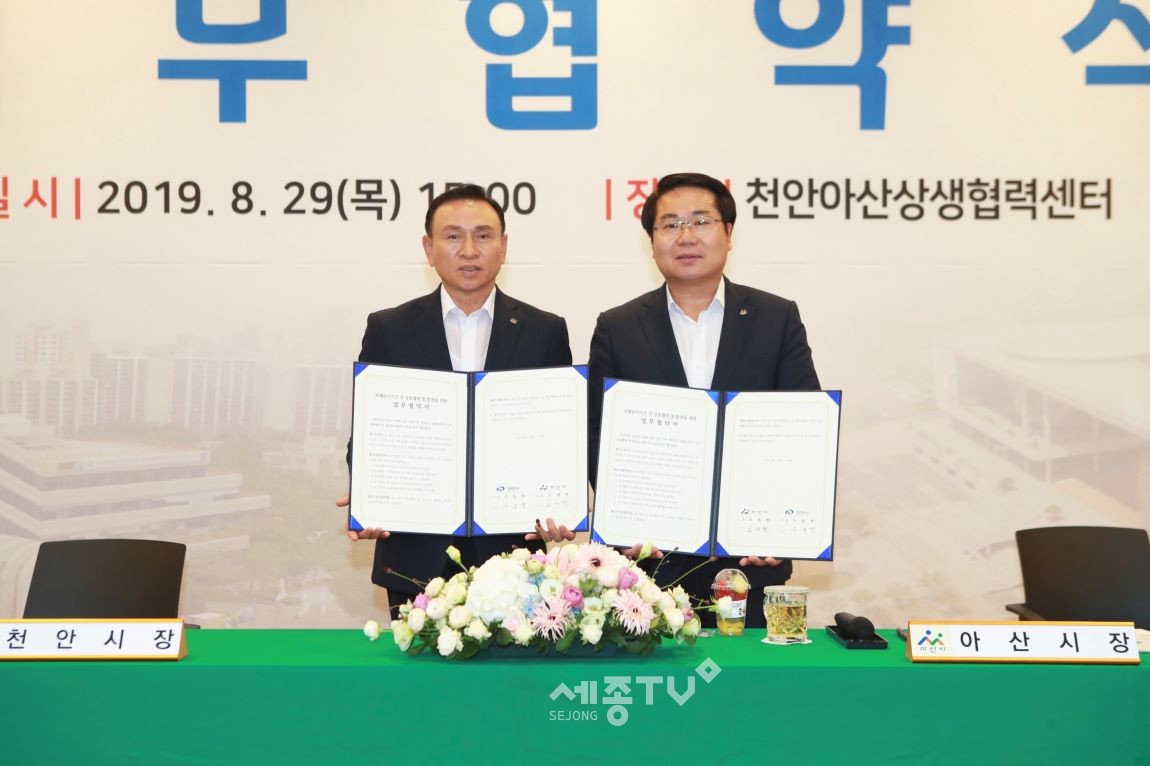 이날 협약식에는 구본영 천안시장, 오세현 아산시장, 천안아산 청렴시민 감사관 등이 참석했으며, 양 시장은 협약서에 서명하고 감사 관련 다양한 교류활동 등에 대해 지속 상호협력하기로 했다.