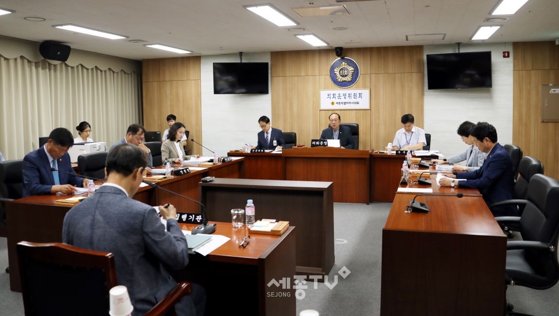 세종특별자치시의회(의장 서금택) 의회운영위원회(위원장 이재현)는 2일 제57회 임시회 기간 중 제2차 회의를 열고, 2019년도 행정사무감사 지적사항 처리계획 보고‧청취의 건과 제2회 추경예산안, 기타 조례안 등 3건을 처리했다.