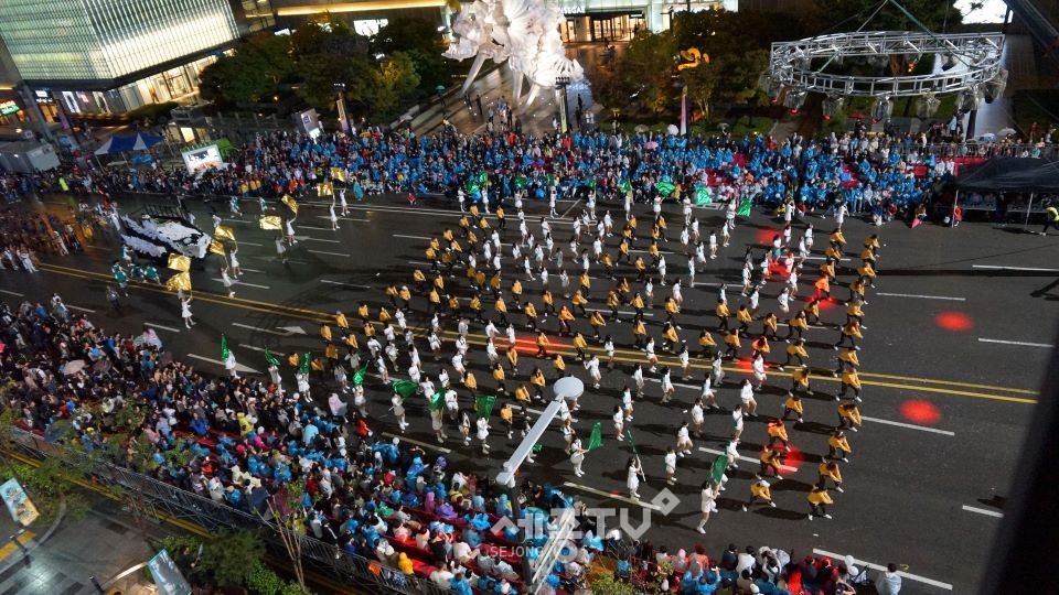 도심 8차선을 가로질러 익숙하던 거리를 화려한 축제장으로 뒤바꾸는 축제의 하이라이트 ‘거리댄스퍼레이드’는 27일 저녁 6시 30분부터 방죽안오거리에서 신세계백화점 구간까지 2,000여명 춤꾼들이 참여해 퍼포먼스를 펼친다.