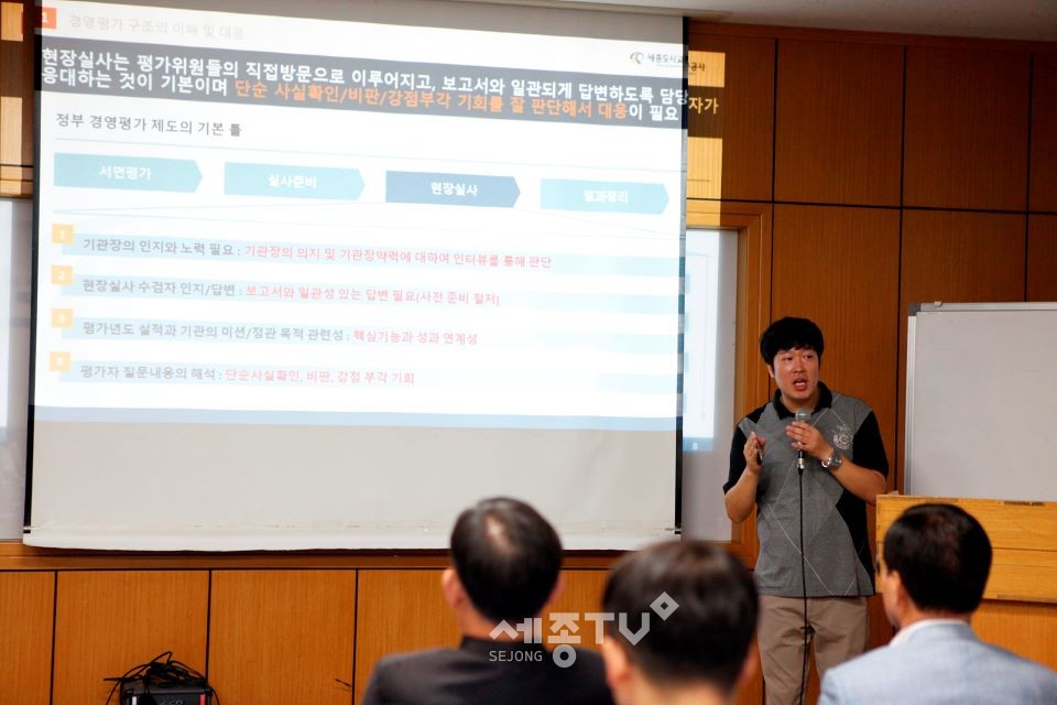 이날 워크숍은 공기업 경영평가의 이해를 위한 교육과 평가지표별 세부추진과제에 대한 담당자별 발표 및 토론, 경영평가 전문가 특강(강사 : 한국능률협회 컨설팅 백세현 위원)으로 진행되었다.