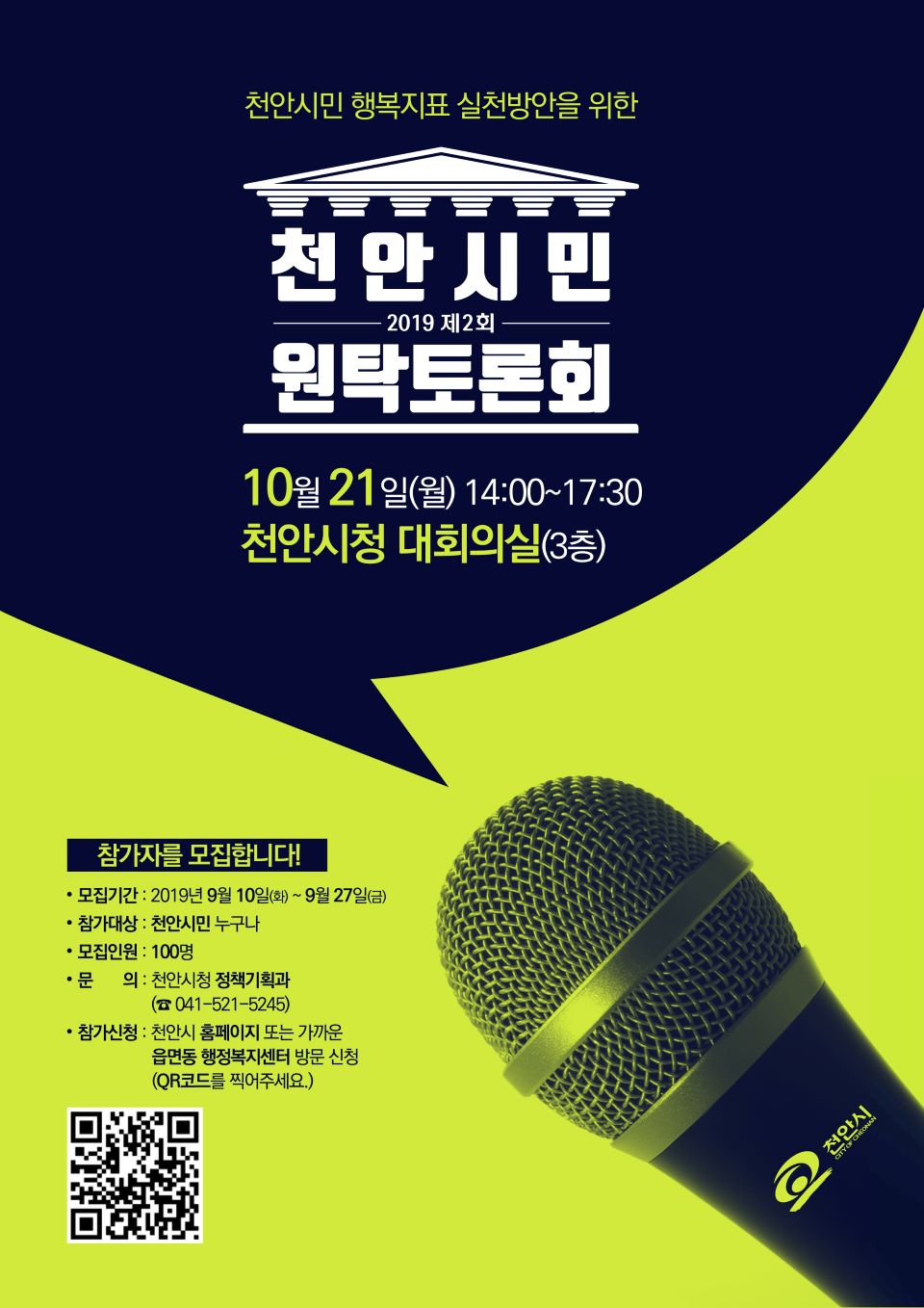 - 천안시, 10월 21일 천안시민 원탁토론회 개최…9월 27일까지 참가자 모집
