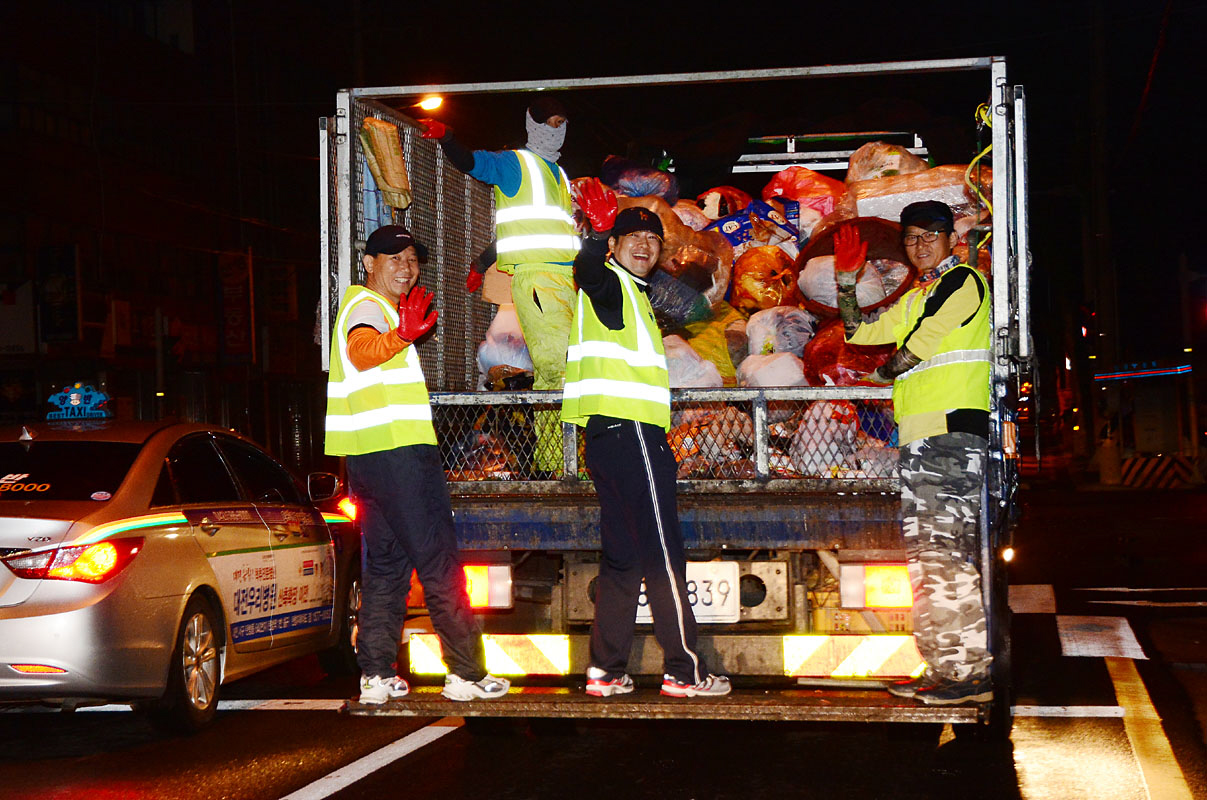 대전시 중구 서대전 고가. 7일 어둠이 채 가시지도 않은 새벽 4시경, 대전지방법원 장동혁 판사와 박용갑 중구청장을 포함한 간부공무원 8명이 수거차량 8대에 나누어 탑승 후 주민들이 배출한 재활용품을 차에 실고 처리장으로 운반해 내리는 수거작업에 직접 참여했다.