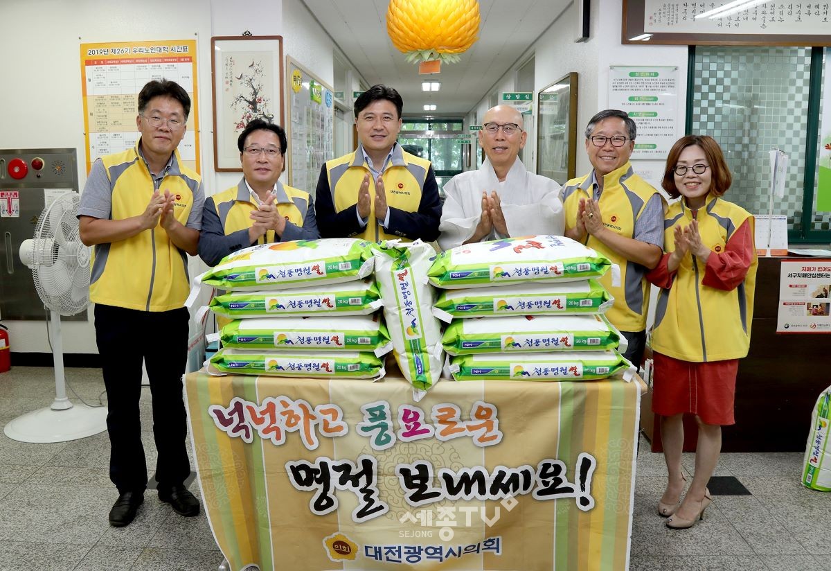 대전광역시의회 김종천 의장은 추석명절을 맞아 10일 서구 탄방동에 위치한 서구 노인복지관(관장 장곡스님)을 방문하여 어르신들을 위로하고 사회복지 활동에 따른 어려움을 청취했다.