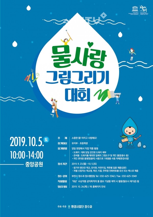 부천시는 오는 23일부터 ‘제16회 물사랑 그림그리기 대회’에 참가할 관내 유치부 및 초등학생 참가자를 모집한다고 16일 밝혔다.