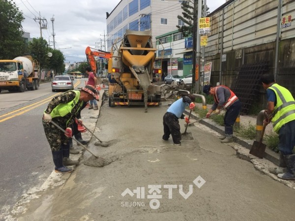 시는 오정자율환경협의체와 여러 차례 회의 및 합동 조사를 실시하여 파손 상태가 심한 오정로(1개소, 150㎡), 석천로(4개소, 56.5㎡) 등 5개소를 선정하여 응급복구에 나섰다.