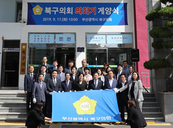 부산광역시 북구의회(의장 정기수)는 지난 17일 북구의회 의원들과 구청장 등 관계공무원이 참석한 가운데 북구청사 게양대에 북구 구기와 나란히 의회기를 게양하였다.