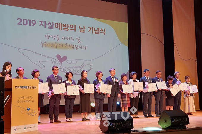 부천시가 지난 10일 서울 코엑스에서 개최된 2019 자살예방의 날 기념식에서 자살예방사업 분야 우수기초지자체로 선정되어 보건복지부장관상을 수상했다고 18일 밝혔다.