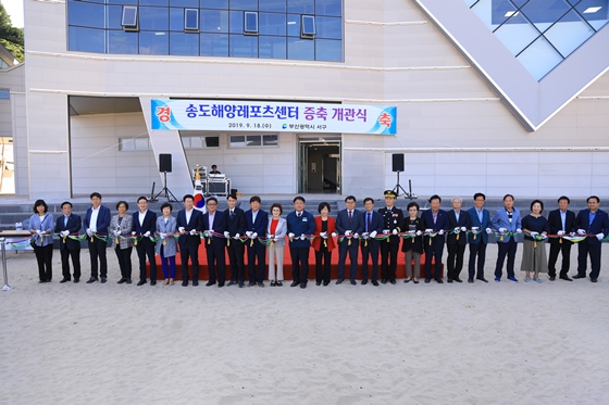 부산 서구가 송도해수욕장 해양레포츠의 메카로 만들기 위해 증축 건립한 송도 해양레포츠센터 개관식을 지난 18일 송도해수욕장 서쪽 현장에서 개최됐다.