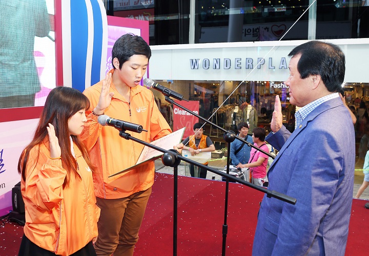 ▲ 대전 국제 푸드&와인 페스티벌 막 올랐다…염홍철 대전시장은 14일 중구 으능정이 거리에서 개최된 원도심 푸드&와인 이야기전 참석하여 자원봉사 발대식, 코레일과 업무협약도 체결했다. 이번 행사는 D-20 사전이벤트로 진행되어 와인 시음회, 플래시몹 등 다양한 프로그램 운영으로 시민들의 발걸음을 멈추게 했다.
