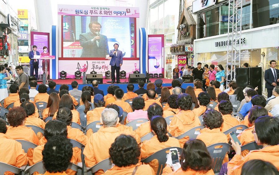 오는 10월 개최되는 2013 대전 국제 푸드&와인 페스티벌의 성공개최 기원 D-20 사전이벤트 『원도심 푸드&와인 이야기 傳』이 지난 14일 으능정이거리(스카이로드)에서 열렸다.