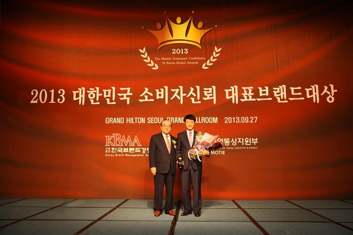 2013 대한민국 소비자신뢰 대표브랜드 대상은 글로벌위기와 경제의 불확실성 속에서도 브랜드의 지속적인 발전과 서비스를 바탕으로 소비자에게 사랑받고 신뢰받는 부문별 브랜드를 선정․시상함으로써 소비자에게 합리적인 소비활동을 위한 정보제공과 브랜드 가치상승으로 건강한 브랜드를 보급하고자 (사)한국브랜드경영협회에서 제정한 상이다.
