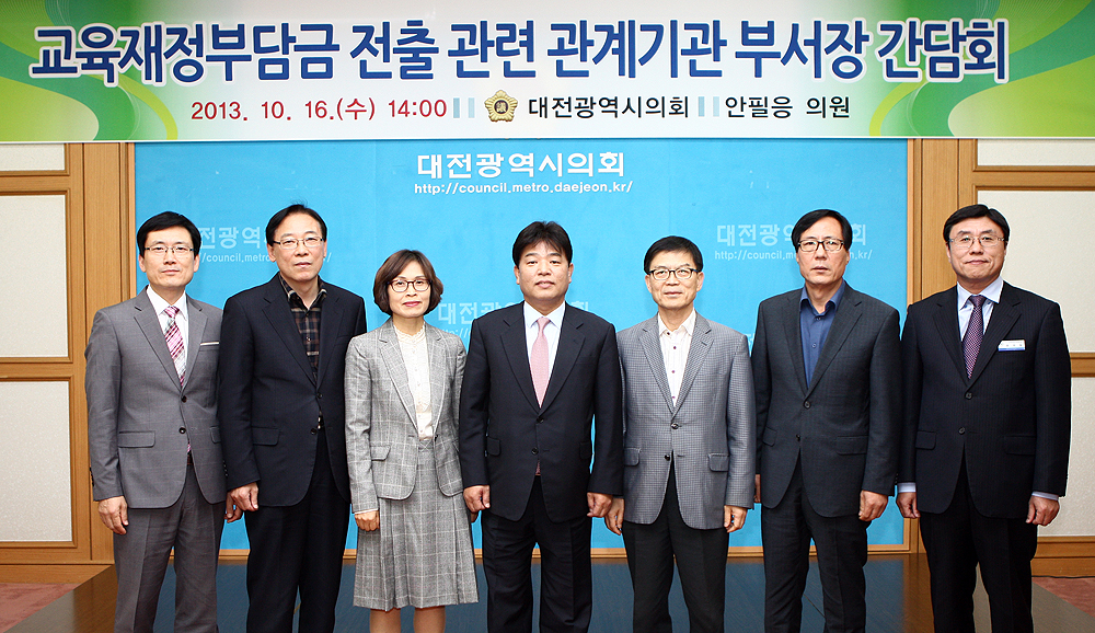 대전시의회(의장 곽영교)는 16일 시의회 대회의실에서 안필응의원(새누리당, 동구3) 주관으로 ‘교육재정부담금 전출에 관한 조례’ 제정을 위한 관계기관 간담회를 개최했다.