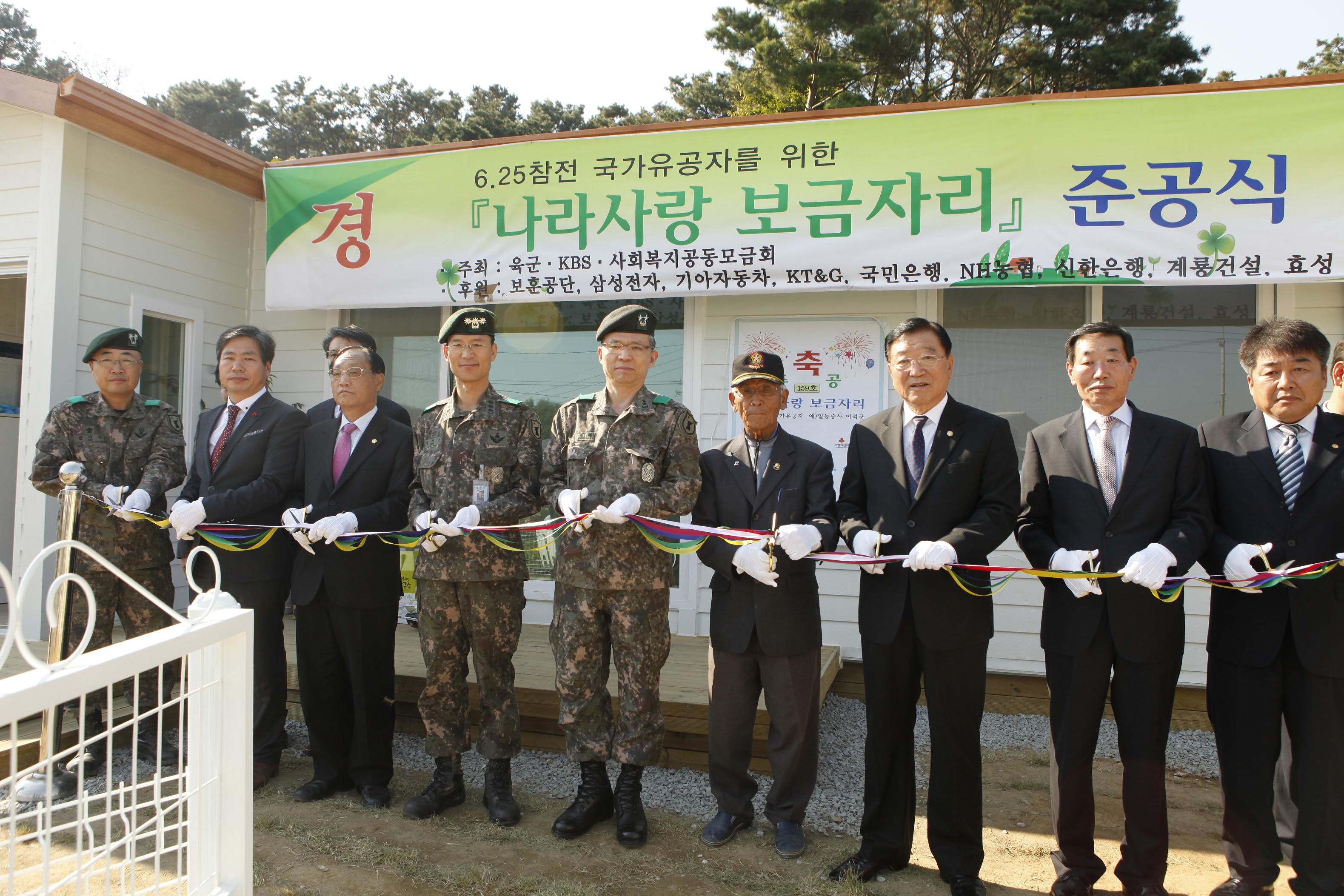 나라사랑보금자리 주택 준공식은 육군 제32사단장, 홍성군수, 홍성군 재향군인회장 및 6·25참전 전우회 회장, 계룡건설 대표 등 후원업체 임원, 마을주민 등 100여명이 참석한 가운데 군악연주, 준공 및 현판식, 다과의 순으로 성대하게 진행했다.