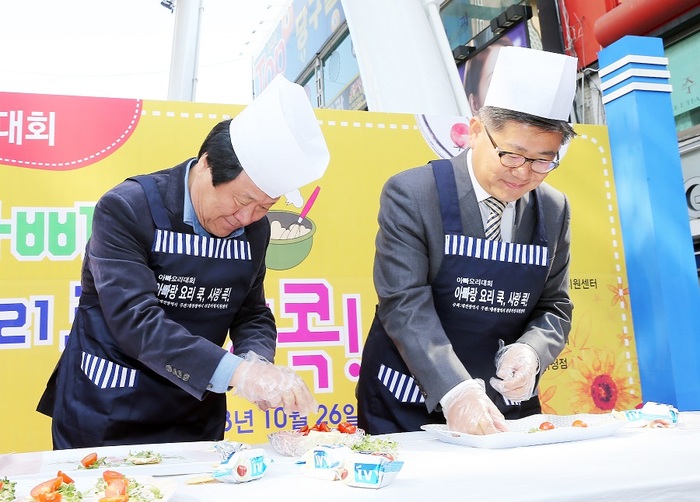 염홍철 시장은 26일 으능정이거리에서 펼쳐진 ‘아빠요리대회’에서 음식을 요리하여 시민들에게 시식을 권하고 있다. 이날 행사는 자녀와 한 팀으로 진행되었는데 100팀에 200여명이 참가하여 성황을 이뤘다 저작권자 © SJB세종TV 무단전재 및 재배포 금지 세종TV 다른기사 보기 페이스북 트위터 카카오톡 네이버블로그 구글+ URL복사 기사공유하기