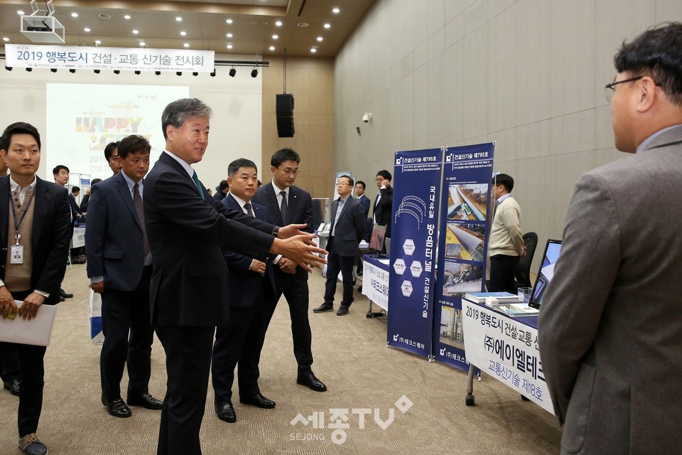 행정중심복합도시건설청(청장 김진숙, 이하 행복청)과 한국토지주택공사 세종특별본부(본부장 김수일)가 주최하고 한국건설교통신기술협회가 주관하는 ‘2019 건설․교통 신기술 전시회’를 5일(화) 정부세종컨벤션센터에서 개최하였다.