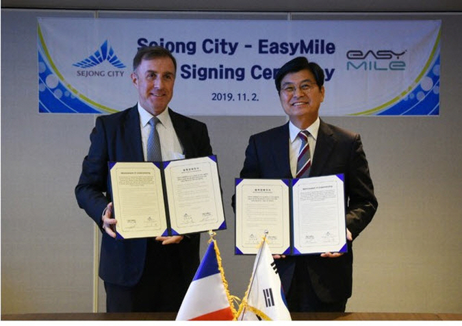 이지마일 사는 자율주행셔틀버스 이지10을 개발, 전 세계 29개국에서 150만 명의 승객을 운송한 실증경험을 갖추고 있어 자율주행 특화 스마트시티 조성을 세종시에 큰 도움이 될 것으로 기대된다.