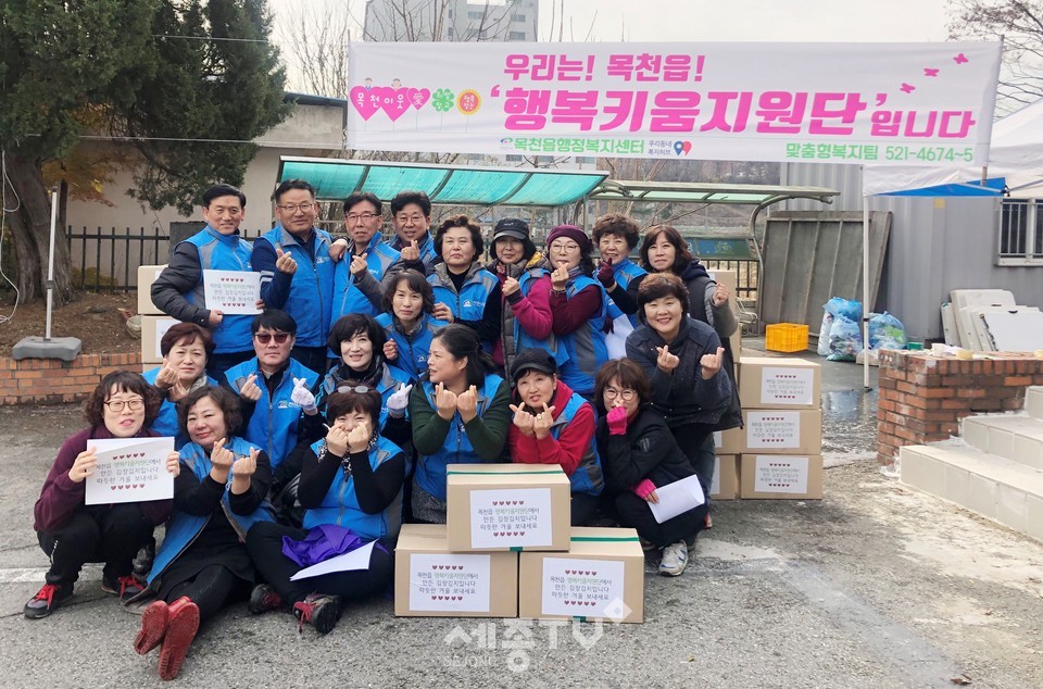 이날 목천읍 행복키움지원단은 홀몸노인, 한부모 가구 등 관내 소외계층에 안부 인사를 전하며 김장김치 100통을 전달했다.