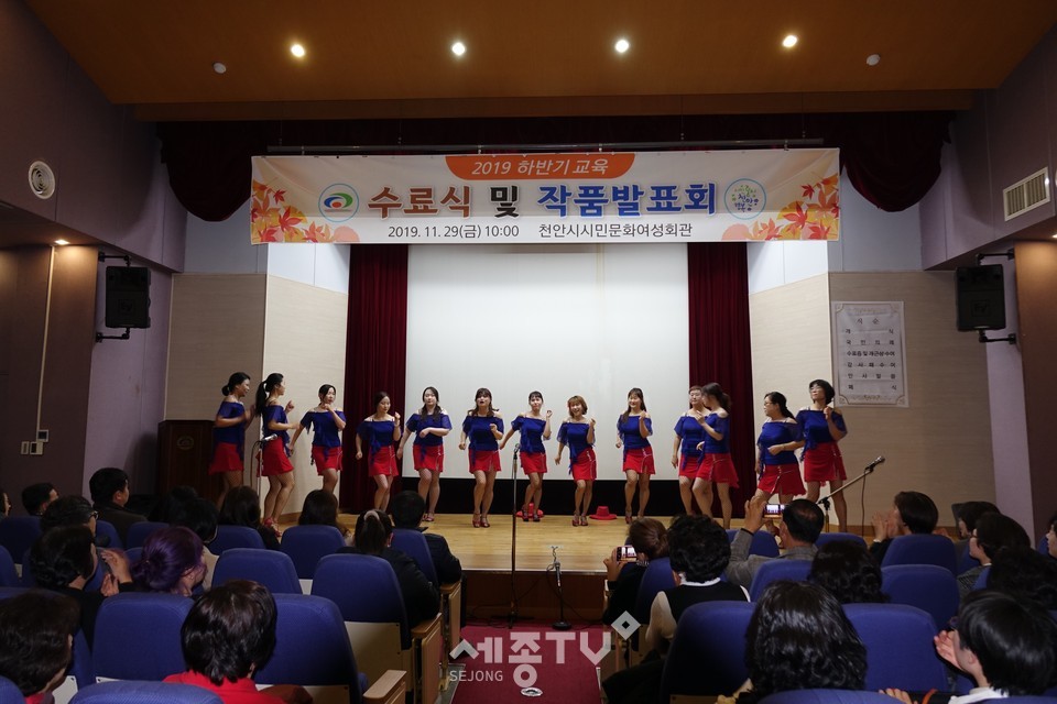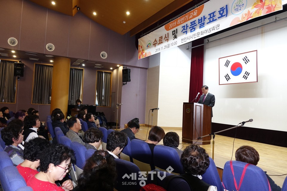 천안시시민문화여성회관이 2019년도 하반기 교육을 마치고 29일 수료식 및 작품발표회를 개최했다.