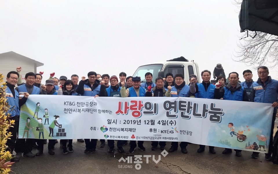 KT&G천안공장(공장장 강훈구)과 천안시복지재단(이사장 문은수)이 4일 오전 취약계층을 위한 ‘2019 사랑의 연탄나눔’ 봉사활동을 펼쳤다.