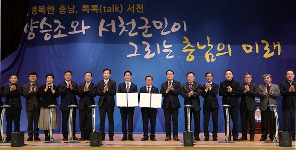 양승조 충남지사는 10일 민선 7기 2년 차 서천군 시군방문을 통해 이 같은 계획을 밝히고, 노박래 군수와 정책협약을 맺었다.