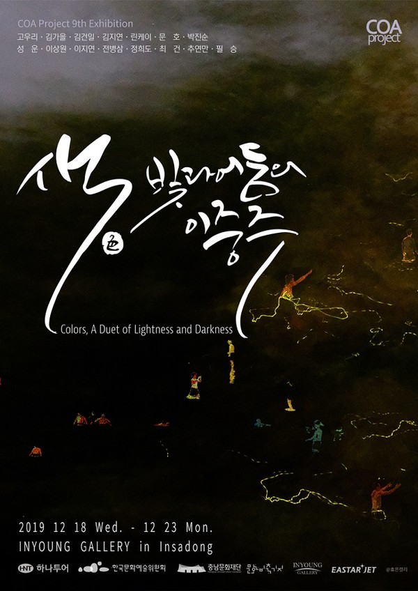 문화예술 희망여행 2019 COA project “색(色), 빛과 어둠의 이중주(Colors, A Duet of Lightness Darkness)展”이 오는 12월 18일, 서울 인사동 인영갤러리에서 개최된다.