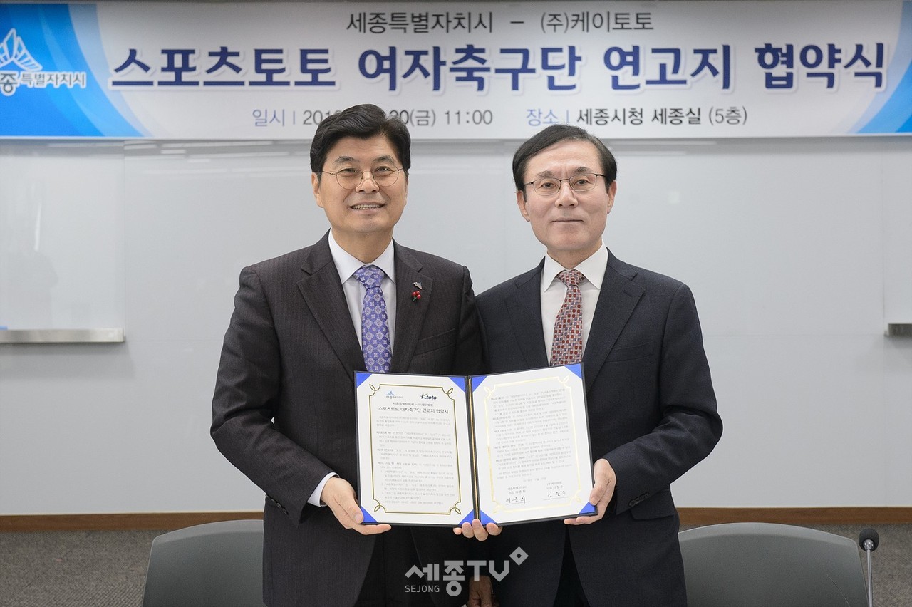시는 20일 시청 세종실에서 국민체육진흥공단이 발행하는 스포츠토토의 수탁사업자인 ㈜케이토토와 ‘스포츠토토 여자축구단 연고지 협약’을 맺었다고 밝혔다.