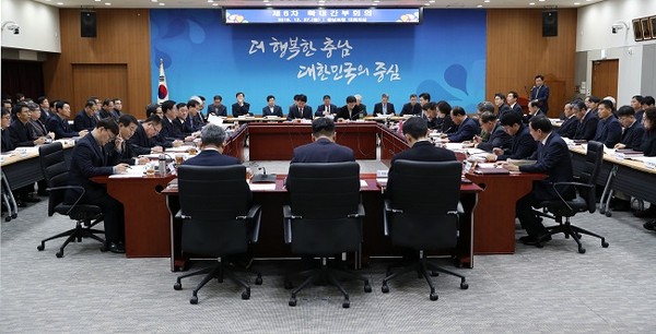 도는 27일 도청 대회의실에서 양승조 지사와 김용찬 행정부지사, 실·국·원·본부장, 직속기관장 등 150여 명이 참석한 가운데 2019년도 6차 확대간부회의를 개최했다.