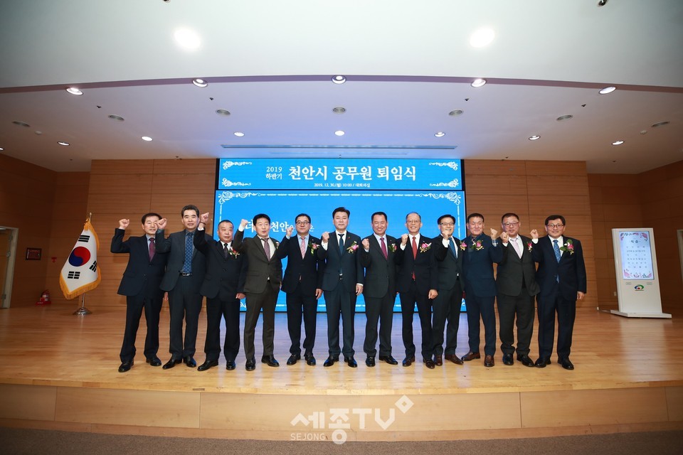 천안시는 30일 오전 시청 대회의실에서 ‘2019년 하반기 공무원 퇴임식’을 개최해 퇴직 공무원들의 영예로운 퇴임을 축하하는 자리를 마련했다.