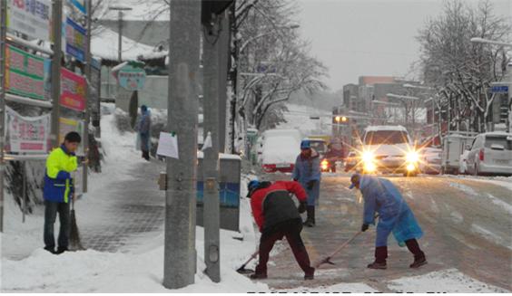 군 관계자는 “내집앞 눈 치우기 캠페인 전계와 지역별 제설작업 분담을 지정 운영 강설시작 초동 단계부터 제설작업을 실시해 교통사고 예방과 원활한 교통 소통으로 주민불편 사항을 최소화 해나가겠다.” 고 말했다.