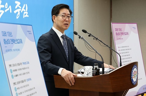 양승조 지사는 8일 도청 프레스센터에서 정례 기자회견을 갖고, ‘미래 10년, 충남의 전략산업과제’를 발표했다.
