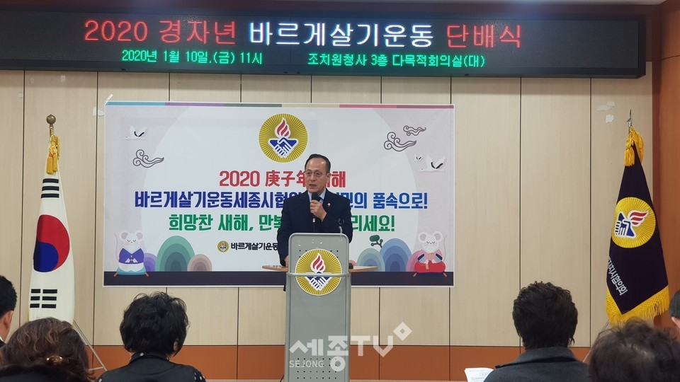 바르게살기운동세종특별자치시협의회(회장 김일호)는 10일 오전 2020 경자년 맞이하여 충령탑 참배를 시작으로 희망찬 새해를 설계하고 덕담을 나누는 단배식을 개최하였다.