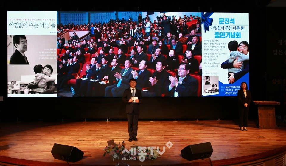 천안갑 국회의원 유력주자인 문진석 충남도지사 초대 비서실장의 ‘아낌없이 주는 너른 품’ 출판기념회가 추운 날씨와 평일 저녁에도 불구하고 대성황을 이뤘다.