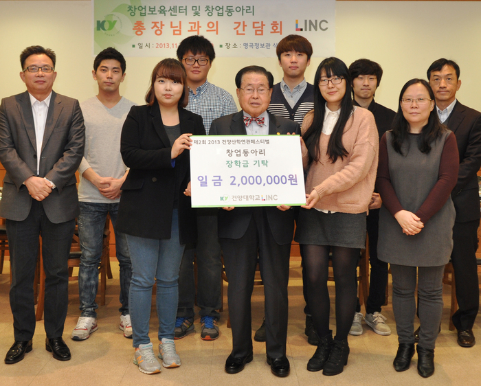 지난 27일에는 건강 100, 커피향 캠퍼스, D.T.B, ㈜비젼텍 등 창업동아리 학생들이 행사부스 운영과 교내 전시관에서 생긴 수익금 200만원을 후배들을 위해 써달라며 장학금으로 기탁하기도 했다.