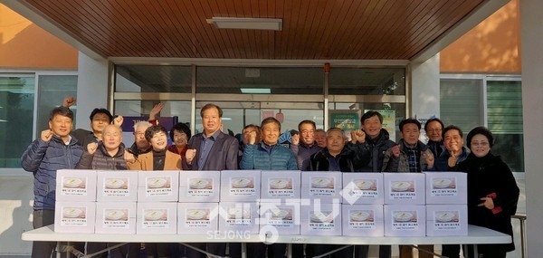 세종특별자치시 전동면 지역사회보장협의체가 20일 설 명절을 맞아 지역 내 독거노인 및 저소득 가구 등 어려운 이웃 80가구에 떡국떡을 전달했다.