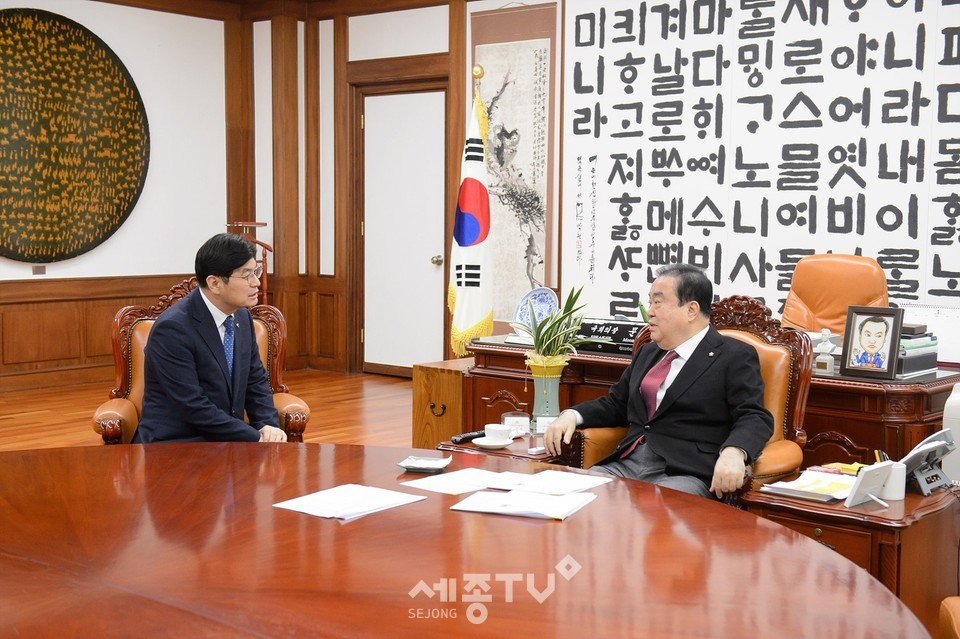 특히 이 시장은 문 의장을 만난 자리에서 오는 2월 임시국회에서 국회법 개정안이 처리되어 국회 세종의사당 건립사업이 안정적이고 속도감 있게 추진될 수 있도록 적극적인 관심과 지원을 요청했다.