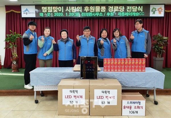 이 물품은 전의면 관내 세종레이캐슬컨트리클럽(CC)이 면내 어르신들을 지원하기 위해 기탁한 현금 600만 원으로 마련됐다.