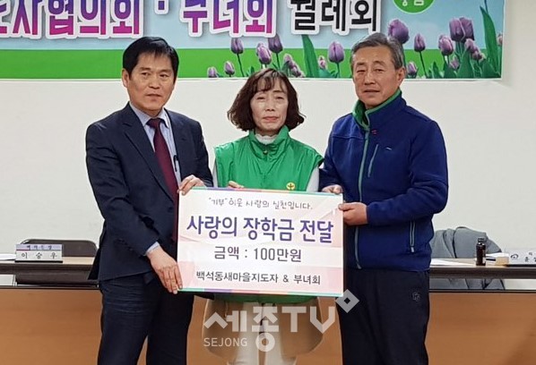 백석동 새마을부녀회(회장 윤상임)는 21일 설 명절을 앞두고 장학금 100만원 전달과 함께 사랑의 떡국 떡 나눔 행사를 가졌다.