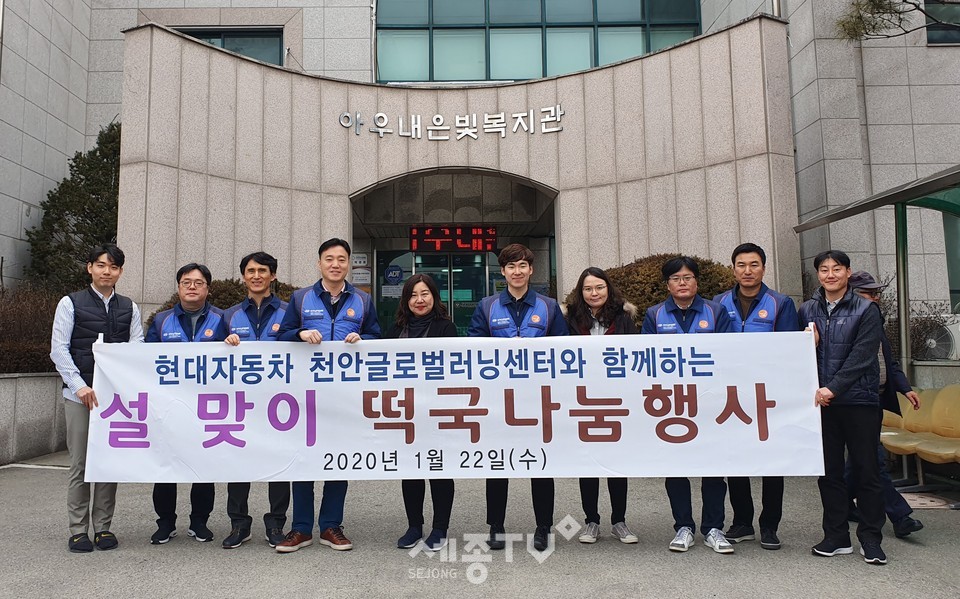 현대자동차 천안글로벌러닝센터 임직원들은 이날 40만원의 후원금과 100만원의 떡국재료를 아우내은빛복지관에 전달하고, 조리와 배식, 뒷정리까지 함께하는 자원봉사활동을 통해 어르신들께 맛있는 점심식사를 제공했다.