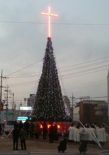 충남 공주시 신관동 전막사거리에 아기예수의 탄생을 축하하고, 온 세상의 평화와 축복을 소망하는 성탄 트리의 불을 밝히는 점등식이 열렸다.