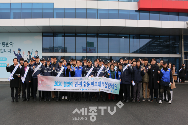 국토교통부 철도특별사법경찰대는 2020. 1. 23.(목) 대전역 서광장에서 대전지방국토관리청, 한국철도공사, 한국교통안전시민협회, ㈜올포랜드 등 임직원 70여명이 참석한 가운데 열차를 이용하는 귀성객 대상으로 “청렴한 설 명절 보내기” 민·관 합동 청렴캠페인을 실시하였다.