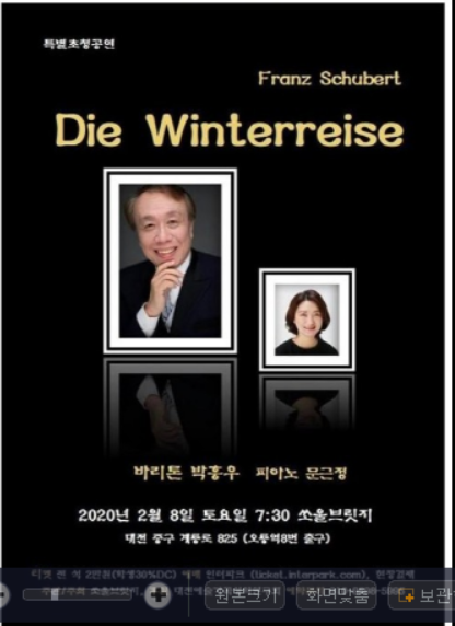 문근정 피아니스트의 깊이있는 선율과 반주로 박흥우 교수의 목소리로 들려줄 '겨울나그네'는 슈베르트의 대표적인 연가곡으로 그의 나이 30세때 작곡한 독일가곡에 새 장을 연 걸작이다.