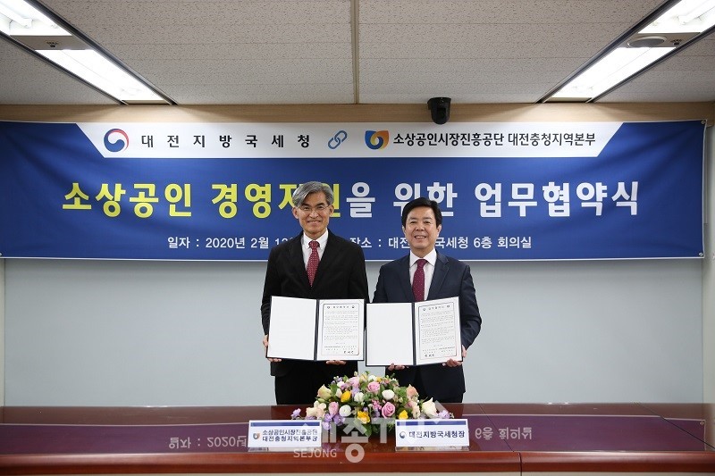 대전지방국세청(청장 한재연)은 12일 대전청 회의실에서 소상공인시장진흥공단 대전충청지역본부와 자영업자-소상공인 경영지원을 위한 업무협약(MOU)를 체결했다.